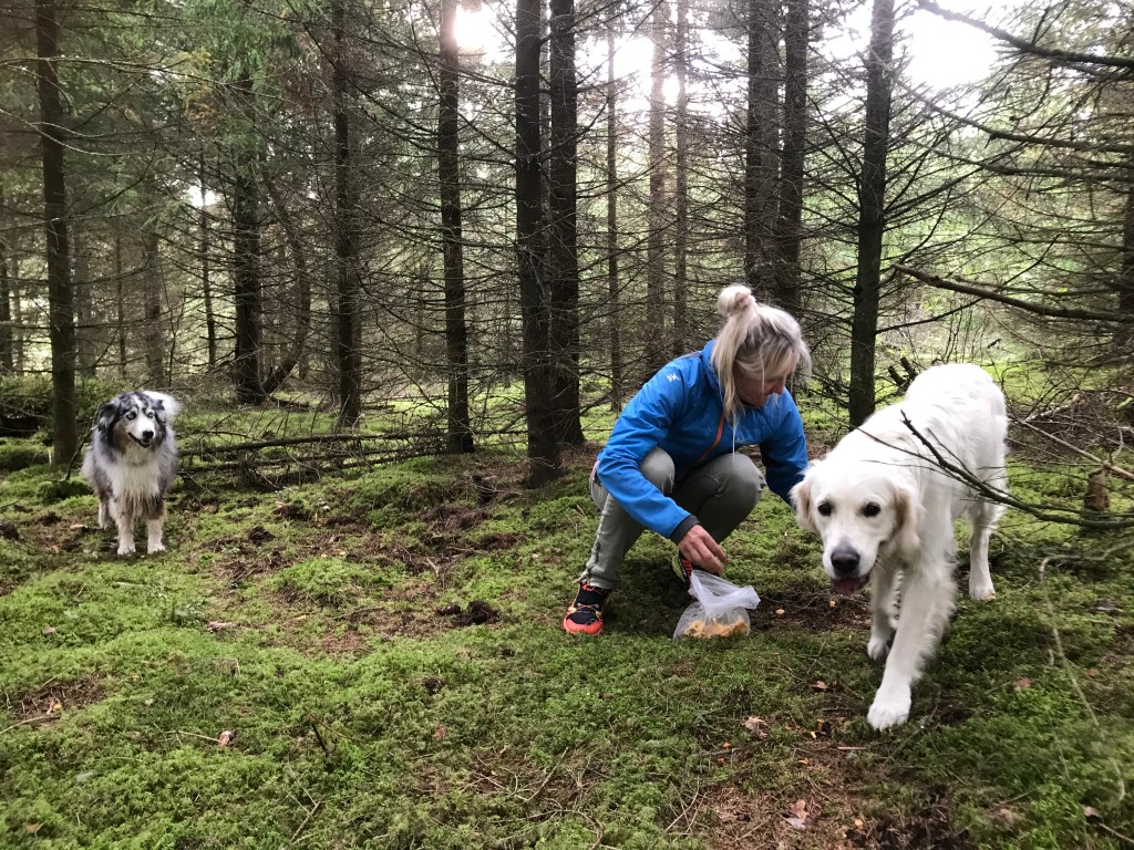 Mit Chinook und den beiden Goldies von Angela, Ella und Alice, drehen wir eine Runde durch den nahen Wald. Dabei erhalte ich die Gelegenheit meine ersten eigenen schwedischen Pilze, Pfifferlinge resp. Kantarelle zu sammeln. Später werden sie zu einem feinen Abendessen verarbeitet. Danke Angela, Du bist wunderbar.
