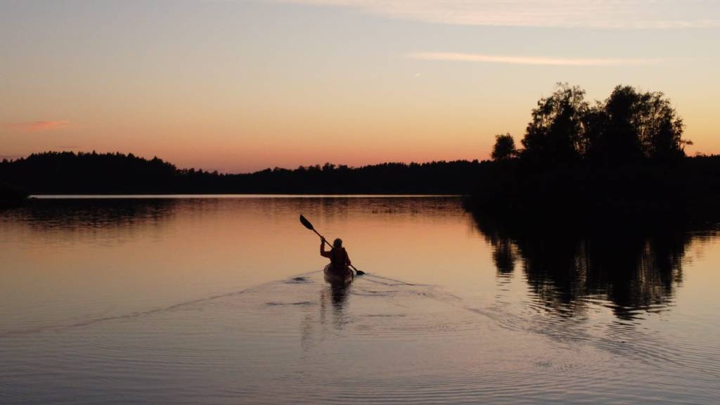 Es wird zu meinem täglichen Ritual, mit dem Kajak auf den See hinaus zu paddeln. Ich umrunde die kleinen Inseln, peile andere Ufer an und versuche mir dabei meine Einstiegsstelle zu merken. Über das dunkle Wasser gleitend, erschliesst sich mir eine stets wechselnde Perspektive. Ab und zu springt ein Fisch. Ich fühle mich klein aber geborgen in meinem Kajak, umgeben von Wasser, den Wäldern und dem Himmel. Ich nehme nur das leise Eintauchen des Paddels wahr, ansonsten ist es still. Eine Stille, die wir in der Schweiz kaum noch finden. Stille hat eine Präsenz. Stille will gehört werden. In diesem Moment ist sie wie ein tiefer langer Atemzug für die Seele.