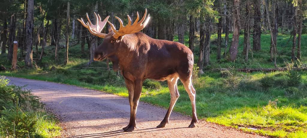 Schweden ist das Land der Elche. Auf meinen Wanderungen durch die Wälder und entlang den Sumpfgebieten an den Seeufern, bin ich stets darauf gefasst einem solchen Riesen zu begegnen. Jetzt im September und Oktober, ist Paarungszeit. Elche verhalten sich während dieser Zeit aggressiver als gewöhnlich, somit ist mir bewusst, dass ich achtsam sein muss. Auch wegen Chinook. Elche werden bejagt. Bären und Wölfe ebenfalls. Der Jagdtourismus für zahlende Gäste floriert. In einem naheliegenden Park lese ich auf einer Infotafel, dass in den Wäldern von Schweden insgesamt ca. 300‘000 Elche frei leben. Jährlich werden etwa 90‘000 erlegt. Männchen, Weibchen und Babys. Je nachdem, welche Summe man bereit ist für den Abschuss, resp. die Trophäe zu bezahlen. Diese Zahl musste ich erst einmal schlucken. Wie jemand ein Hochgefühl dabei empfinden kann, Tiere zum eigenen Vergnügen zu töten, und sich dessen Leben mit Geld erkauft, hat sich mir noch nie erschlossen.
