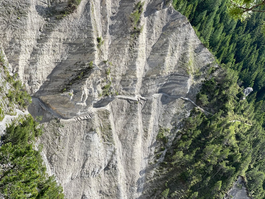 …diese Passage (ein Teil des Walserweges) brauchte wirklich Überwindung (Weg an der Felswand)