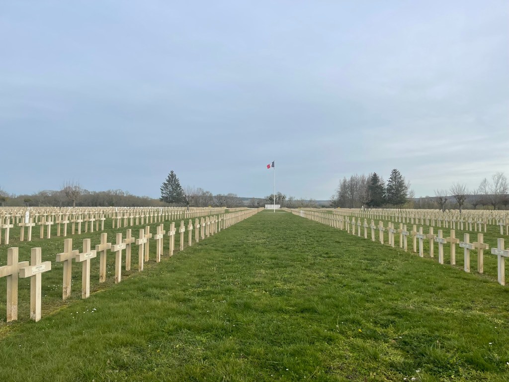 Diese Gedenkstätte bei Calais ist eine von vielen in dieser Form und in diesem Ausmass. In fast jedem 10. Ort hier treffen wir auf eine weitere.